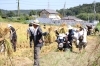 9/6、台風一過の青空の下、小湊鉄道・上総久保駅脇の田んぼで「加茂米収穫体験」が行われました。