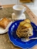ランチには「キッシュとソーセージのプレート」もありますが、人気No.1のハンバーグをチョイス!ふわっとジューシーな手作りハンバーグに大満足。ランチではバターの風味たっぷりのクロワッサンと雑穀米をどちらか選べます。ぷりぷりのソーセージはハーブとお肉の旨みが絶妙で、あっという間に完食!カフェタイムにはイートインできるパンもおすすめです。店内には隠れたハートがあるので、訪れた際はぜひ探してみてください♪