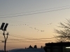 空を見上げると、猪苗代湖で出会ったあの白鳥たちが、群れを成してVの字で空を飛んでいきました。